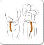 - Follow the crutch line, between your legs to the top of the
